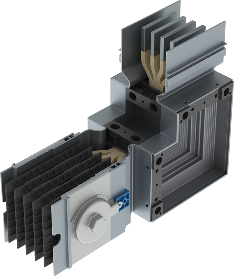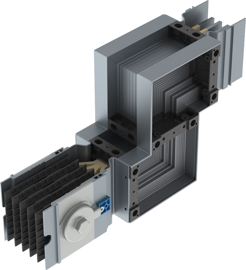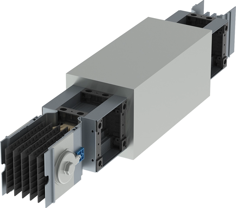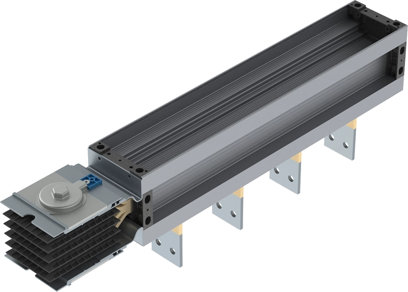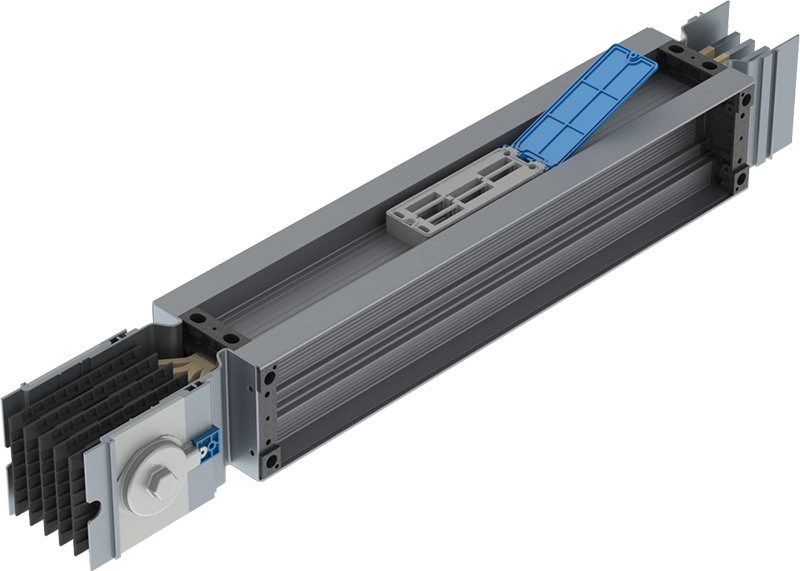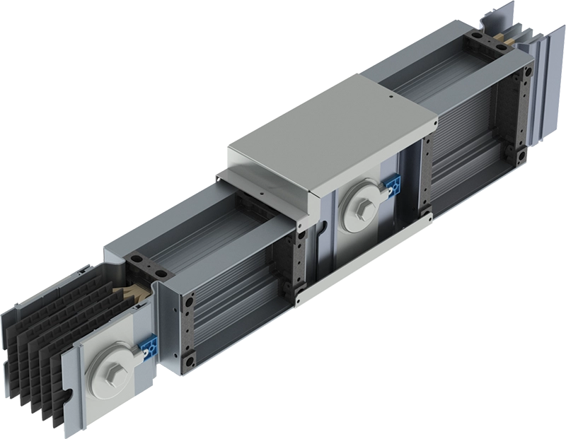 O barramento blindado da HB revoluciona o sistema de distribuição de energia através de barras. Sistema super compacto – HBc – composto por estrutura em alumínio anodizado, barras coladas com duplo sistema de isolação e junções de elementos que facilitam e asseguram a montagem correta na instalação.
